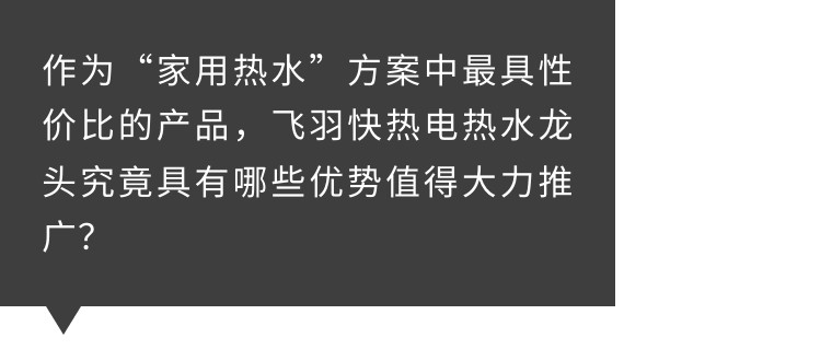 與傳統(tǒng)衛(wèi)浴水龍頭相比,能夠“隨時(shí)隨地直接出熱水”的飛羽快熱電熱水龍頭更具性價(jià)比。一個(gè)龍頭兼?zhèn)?/span>出水功能和加熱功能,實(shí)用性高且價(jià)格親民,一步到位的感覺就是好。